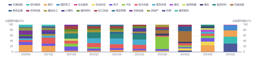 2025年中期,诺德增强收益债券主要持有交通运输、纺织服装、银行、军工等行业;2024年末,该产品主要持有银行、石油化工、电子等行业;2023年末,该产品主要持有汽车、机械设备等行业。
