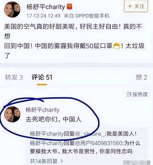 演讲事件过后,杨舒平顺利从大学毕业,她拒绝了回国发展的机会,一门心思要留在美国生活。