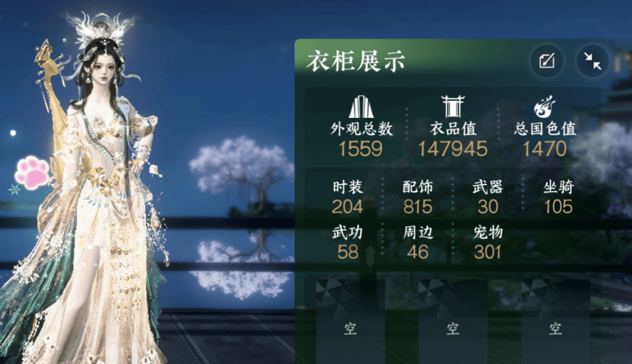 毕竟逆水寒手游不比战力,虽说氪金的地方只有外观,但大多数衣服都可以靠白嫖和代金券拿下,她的号目前有204件时装,价值288的顶级外观也有十多套,比如最近上线的楼兰主题都有拿下。
