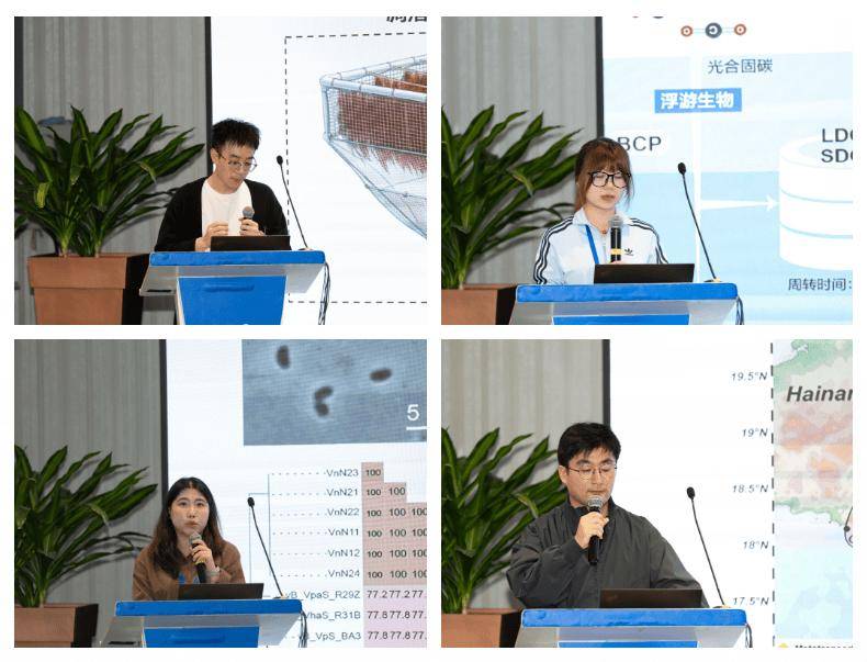 下午的报告中,浙江大学潘依雯教授、中国科学院广州地球化学研究所刘冬研究员等多位专家学者围绕数值模拟、贝类养殖固碳、绿潮藻暴发、近海惰性碳产生机制、海洋铁施肥、微生物碳泵耦合、古气候演变、浮游动物碳输出、大型藻类碳封存、病原菌演化及上升流区域有机碳降解等议题进行了深入交流。