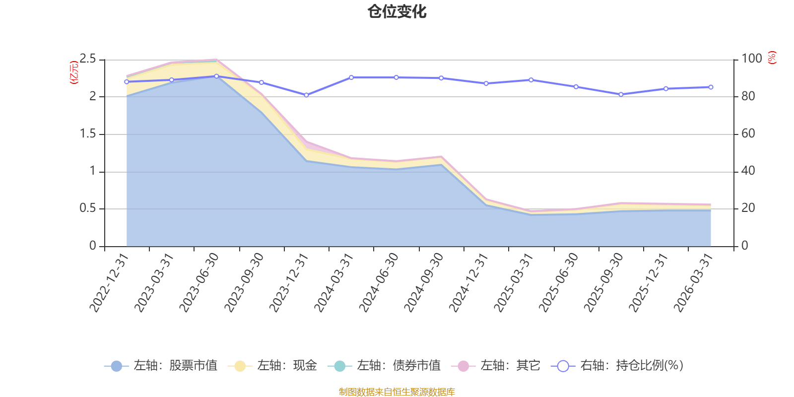 据定期报告数据统计,近三年平均股票仓位为86.96%,同类平均为84.02%。2023年上半年末基金达到91.1%的最高仓位,2023年末最低,为81%。