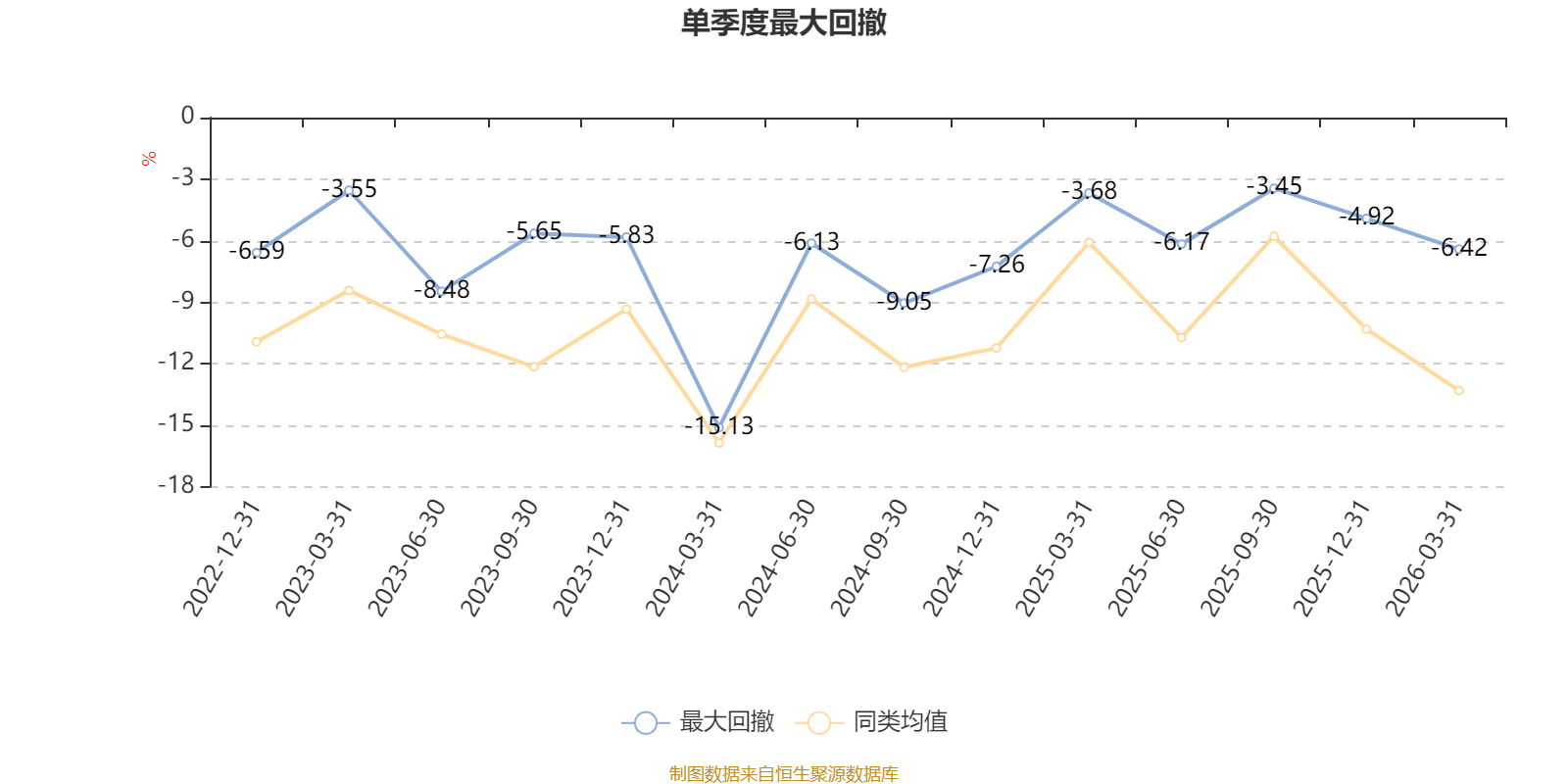 截至4月20日,基金近三年最大回撤为21.69%,同类可比基金排名44/395。单季度最大回撤出现在2024年一季度,为15.13%。
